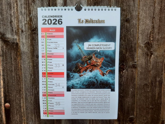 Ce prix comprend 1 calendrier sur lequel on peut écrire avec même les dates des vacances scolaires et le nom des gens du jour à qui réclamer un apéro + le conditionnement + les frais de port France métropolitaine