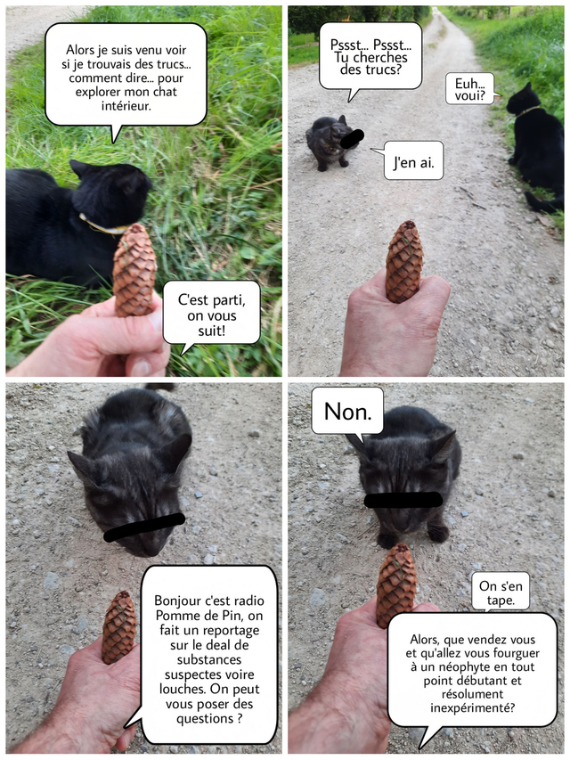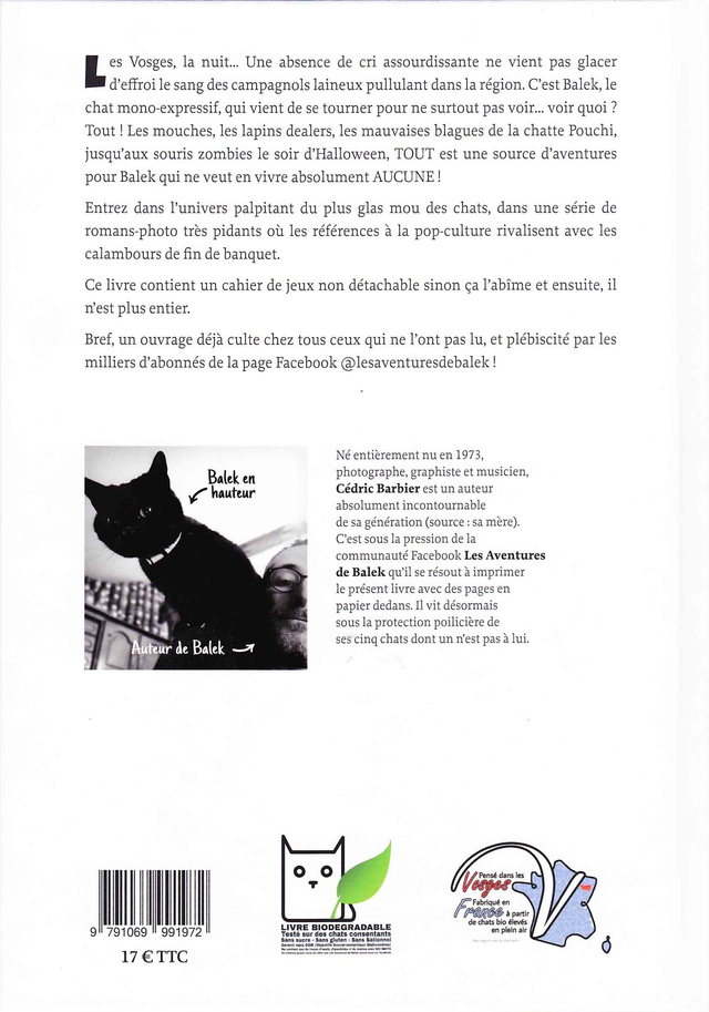 Quelque part dans les Vosges, un chat mono-expressif préfèrerait ne pas vivre de stupéfiantes aventures... Mais quand on vit avec Pouchi, la chatte un peu simplette, des lapins dealers, des poulets suspicieux et des campagnols zombies, il ne reste que le choix de l'embarras. Un livre qui sent bon la croquette au poisson et l'herbe des talus,128 pages de roman-photo félin, de références pop, de calembours désolants et même un cahier de jeux tâchable.