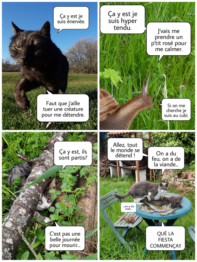 Après le succès planétaire du premier tome de ses Aventures, Balek, le chat mono-expressif vosgien, s’est juré de ne plus jamais. Plus jamais quoi ? Tout. Malheureusement pour lui, la pelucheuse et nonobstant catastrophique chatte Pouchi a eu l’idée d’organiser un barbecue…